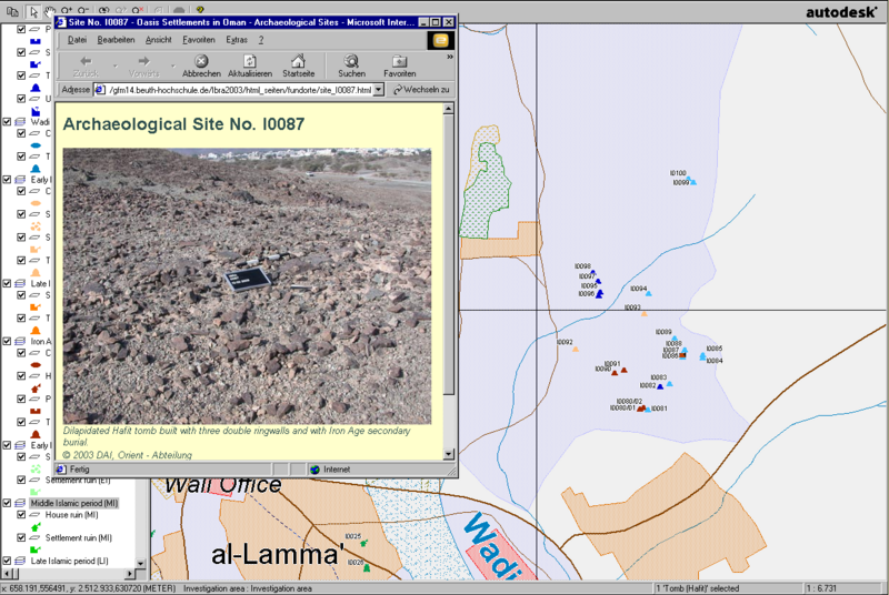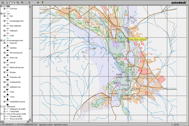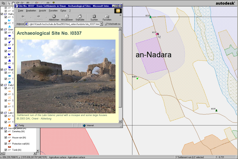 The visualisation of the archaeological sites and the clarification of the natural and topographical conditions take place as a Geographical Information System. This work is prepared as a master thesis in cartography by Martin Grosch at the University of Applied Sciences Berlin (TFH), Germany. Supervised by Bernd Meißner (TFH). Editional staff and archaelogical data from Dr. Jutta Häser (DAI).