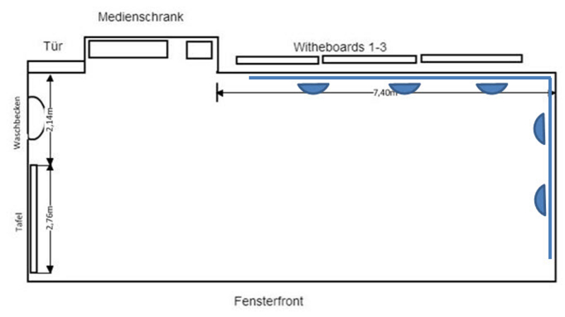 Der Laborraum B 542 ist mit hochflexiblen, dynamischen Design Thinking Möbeln (System 180), einem digitalen Whiteboard (Smartboard von Promethean) und digitalen Wänden (Interactive Wall) ausgestattet und steht als moderner Seminarraum für die Umsetzung von Lehr-Lern-Szenarien mit Fokus auf mediengestützte Teamarbeit, agiles Arbeiten und agile Projektmanagement Methoden sowie Kreativtiätsworkshops, Kommunikations-/Moderationsworkshops und Design Thinking Sessions zur Verfügung.