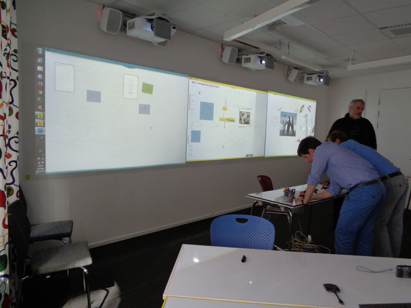 - Die Wand kann als komplette Fläche monitorübergreifend genutzt werden und ermöglicht damit konzeptionelle Arbeit.
